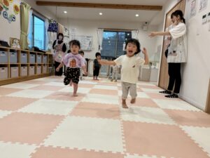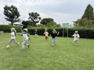 園庭でも練習しました。いい笑顔で走っていましたよ。