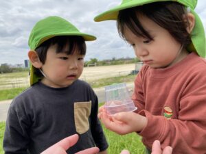 先日は土手へ行き、てんとう虫を見つけプリンカップに入れて観察しました♪